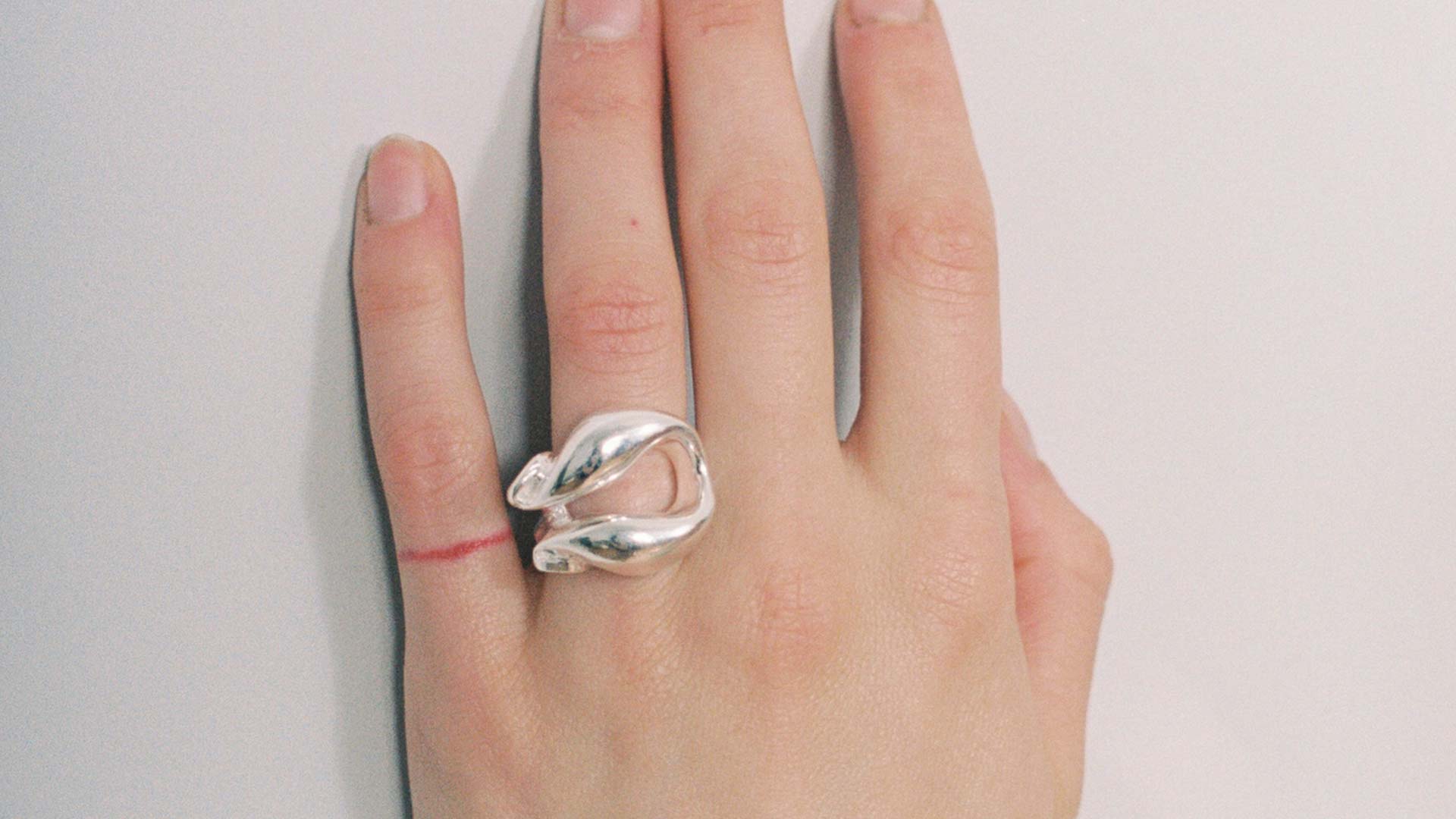 Anillo de plata de ley, con una forma escultórica tipo omega.