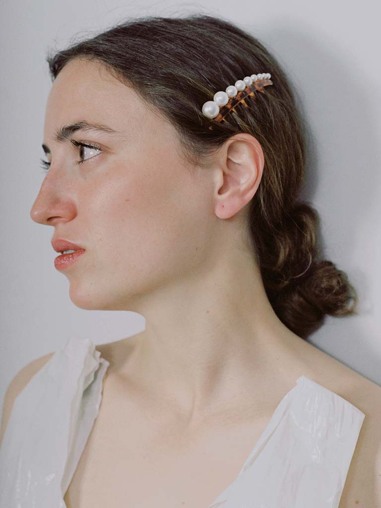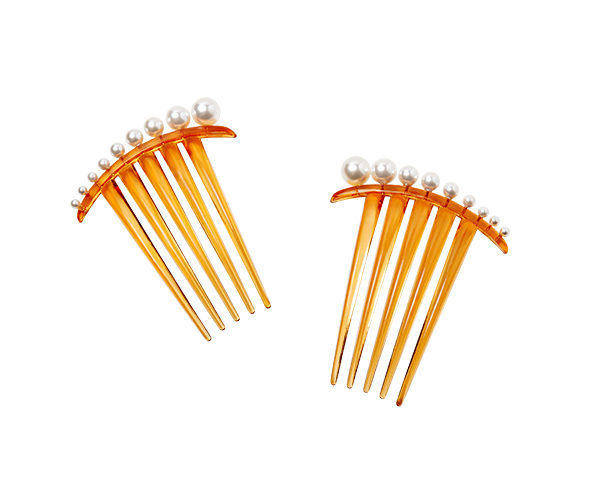 Set de 2 peinetas adornadas con perlas del Pacífico Sur en tamaños degradados, dispuestas en una secuencia natural y fluida.