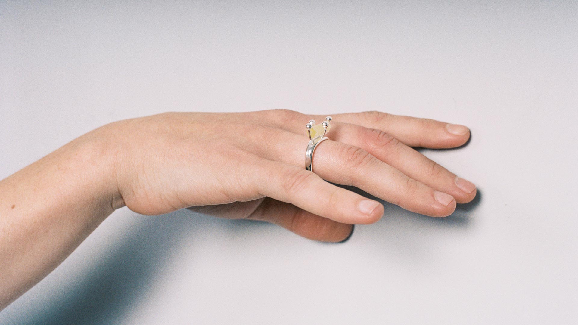This ring is made from sterling silver, featuring an antique crystal in a secure prong setting. The crystals used in this design are antique pieces. Due to their limited availability, this edition is offered in small quantities.
