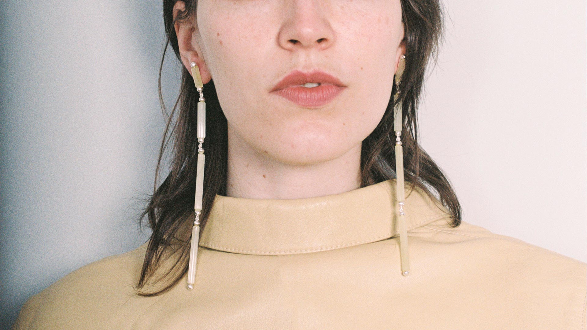 Sterling silver earrings set with pale yellow satin crystal. Sold as a pair. The length is 15cm.